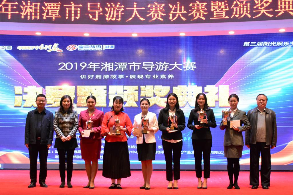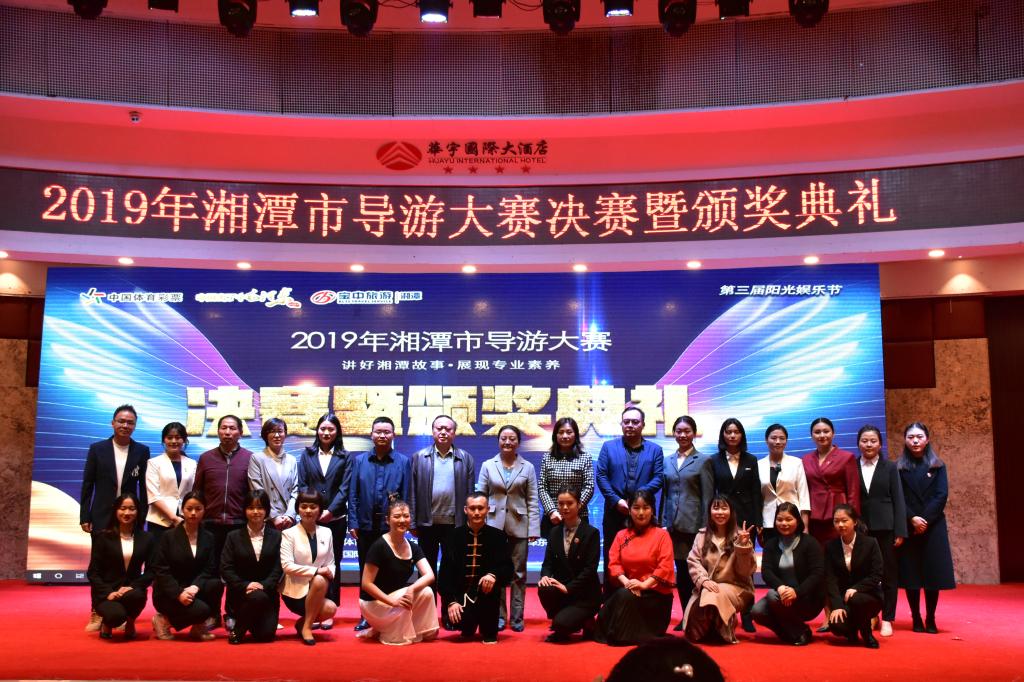阳光正暖,微风不燥,11月24日下午,2019年湘潭市导游大赛决赛暨颁奖典礼在湘潭华宇大酒店三楼国际会议厅举行。本次大赛是由湘潭市文化旅游广电体育局、湘潭市总工会、共青团湘潭市委员会、湘潭市妇女联合会主办,湘潭市导游协会、湘潭市旅行社协会承办的一次展现全市导游人员风采、提高导游人员职业素养的专业技能竞赛。大赛历时四个多月,200余位导游员参赛,我校旅游学子罗娜、朱晓晓等6位选手通过初赛、复赛环节,代表太阳成顺利进入决赛。