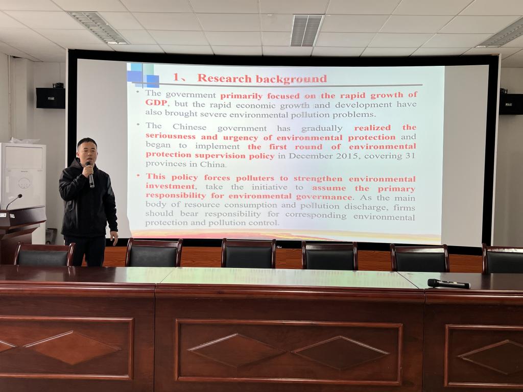 首先由王超博士分享近期研究成果《Does environmental investment improve corporate productivity? Evidence from Chinese listed firms》,在分析研究成果之余,王老师还分享了许多投稿经验,激发大家展开了热烈讨论。