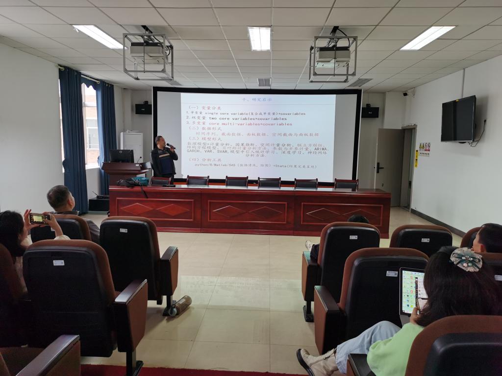 紧接着,由陈辉民博士分享其近期研究成果《数字经济测度、地区差异、分布动态和收敛性研究:以湖南为例》,陈教授的选题新颖,方法创新,内容丰富,大家纷纷表示受益匪浅。