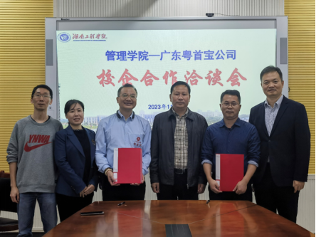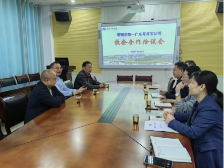 深化产教融合,推动校企合作是实现我校应用型本科定位的重要举措,是培养经济管理类学生实践能力的重要途径。本次洽谈,达成了管理学院与广东粤首宝科技有限公司的合作协议,确定了以学科竞赛、项目驱动等方式进行的校企合作模式,为提升我院学生的综合素质和能力提供了更多的锻炼机会。