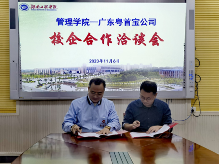 最后,余博书记代表管理学院与广东粤首宝科技有限公司董事长赵卫国先生签订了校企合作协议。