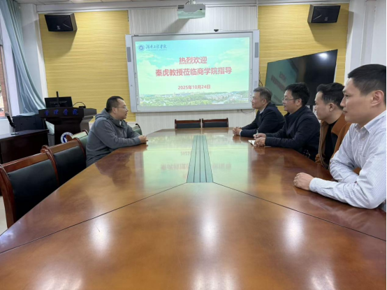 10月24日下午,ok138cn太阳集团在F104会议室举行座谈交流会,特邀华中科技大学秦虎教授莅临学院,就学位点建设与科研能力提升工作进行深入指导与交流。ok138cn太阳集团副院长(主持行政工作)潘立军、副院长曾贵、数字经济专业系主任及部分骨干教师代表参加了此次会议。