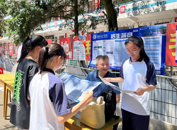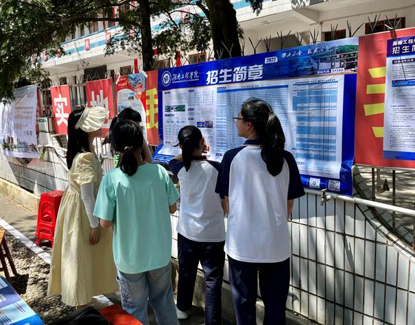 邵阳武冈方向的中学为主要巡讲地,此次活动围绕湖南省新宁县第一中学、湖南崀山培英学校、湖南省新宁县第三中学和邵东一中展开。刘佳馨负责在校内设置咨询交流台,与学生面对面沟通,张贴招生简章,利用太阳成招生宣传册以及经济学院招生宣传册进行全方位介绍,从学院实际情况出发,详细介绍院系特色、专业设置及发展等,讲解2022年招生录取新政策,为大家答疑解惑。卢时光就同学提出的问题进行详细解答,介绍学院、特色专业、师资团队、教学设施等基本情况,以学科特点、专业规划、职业优势等吸引生源,充分展现经济学院的学院魅力。