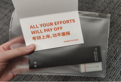 猿辅导是互联网在线教育的“独角兽”企业,其分公司长沙猿辅导不仅为我校各学院毕业生提供了众多优质且具有发展前景的就业岗位,更是在考研的特殊时期为我院学子送上了暖心的助力包,将用心和关爱都凝聚在这一支支笔和一张张祝福卡片上。在此,我院非常感谢猿辅导为我院考研学子的支持和鼓励,也期待未来能有更多的合作。