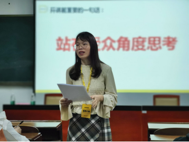 在现场,大家都十分认真的听取吕心田女士的指导,整个赛前指导现场同学们积极踊跃、精神饱满。赛前指导最终在同学们的掌声中圆满结束,最后,吕心田女士为仍有疑问的同学进行了一对一解答。