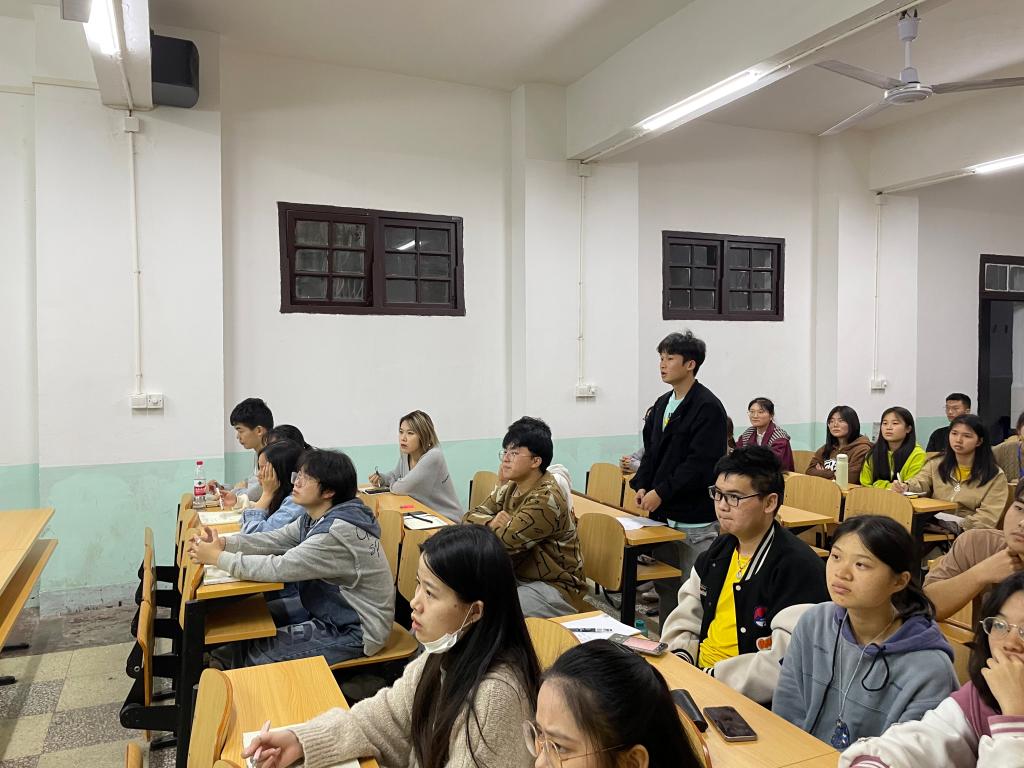 培训第二部分是于丹洋的经验分享,于丹洋首先为选手们介绍了PPT汇报的方法,然后分享了她的复赛、决赛的PPT以及当时她参赛的想法与经验。利用自身经历给选手们讲述一些有关PPT的制作、PPT的排版、文字、动画和字体、以及PPT汇报等需要注意的地方,还有比赛时可以用到的技巧。培训过程中,选手们积极思考,踊跃回答老师提出的问题。在张世免老师和于丹洋讲解时,选手们紧跟他们的思路,根据自己的需要进行拍照、摘录并且及时给出回应。最后,本次培训在选手们热烈的掌声中圆满结束。