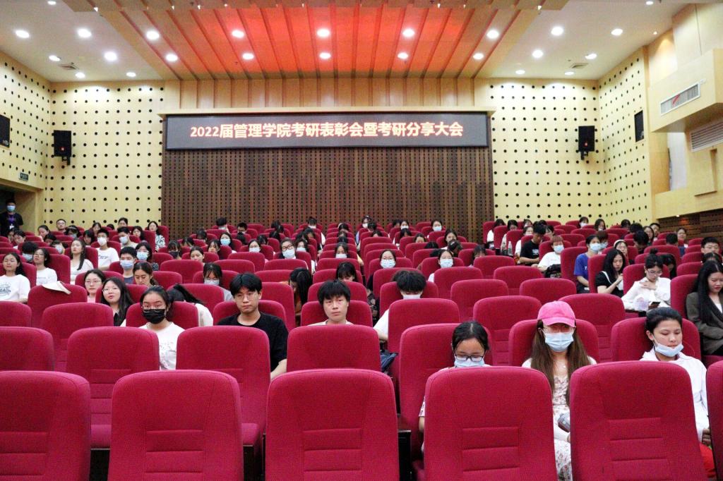 为表彰在2022年全国硕士研究生考试中取得优异成绩的管院学子,同时,为存在考研相关疑问的同学提供经验分享交流机会,6月10日19点至21点,太阳成管理学院于新校区图书馆二报告厅成功举办了2022届管理学院考研经验分享会暨考研表彰大会。考研表彰大会由管理学院党委副书记谭超主持,到场领导包括管理学院院长徐运保,党委书记余博,副院长潘立军、张维梅,院办主任单艳艳,学办主任黎博,2022届管理学院考研优秀毕业生,管理学院大二、大三各班级代表参与会议。