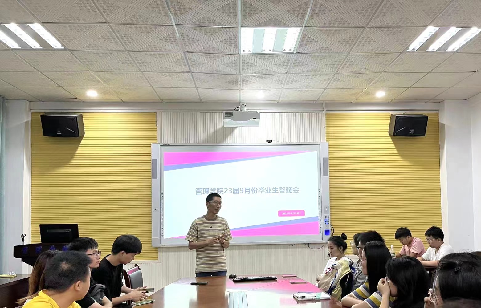 为解决2023届毕业生在就业方面存在的问题,调动毕业生的就业积极性,更好的开展学院的就业工作9月29日晚上七点,管理学院就业工作负责人包海燕于新校区教学楼F104室召开2023届毕业生九月答疑会。答疑会从“当前就业形势”“毕业生存在的主要就业困惑”“存在的就业机会”三个方面来分析应届毕业生就业问题,管理学院副书记谭超出席会议。此次答疑会共有50余位不同专业的应届毕业生参加。