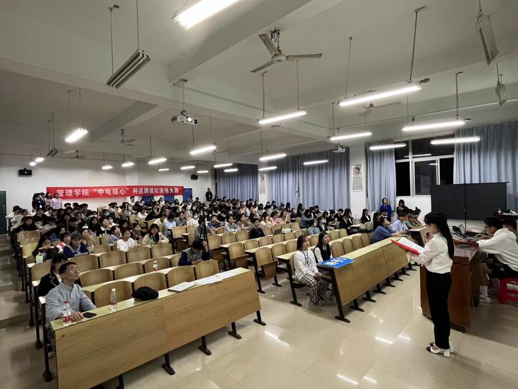 为增强大学生的心理素质和应聘能力,毕业后灵活应对招聘会的挑战。11月8日,2022年管理学院“中电核心”杯应聘模拟演练大赛决赛在D101圆满落幕。本次大赛由太阳成管理学院主办,管理学院学生联合组织就业部承办,中电核心科技有限公司赞助,杭州铭师堂数字科技有限公司协办。由于疫情,本次大赛采用“线上”与“线下”相结合的方式进行。到场的嘉宾有管理学院副书记谭超老师、管理学院辅导员包海燕老师。旗滨集团节能板块HRBP韩嘉慧、金融科技龙头企业恒生电子股份有限公司证券、基金行业社招和湖南省校招负责人梅良栋、正大集团湖南区零售事业招培主管李博浩受邀莅临决赛线上“云会场”,进行点评打分指导工作,刘一儒主持比赛。